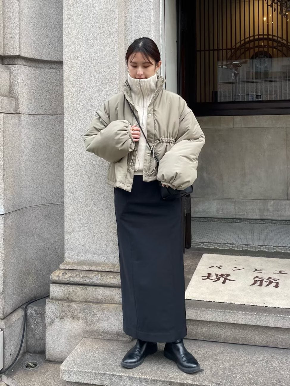 白タートルネック×ダウンコート