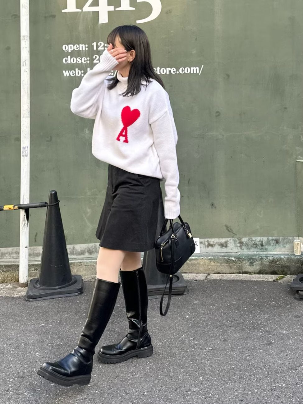白タートルネック×ジャンパースカート