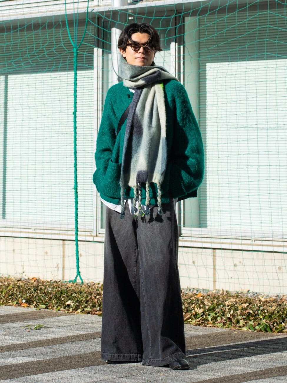 ▼カーディガンをマフラーにする上級者コーデ