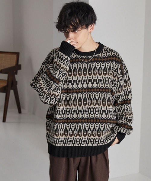 1月に活躍するニットは、アウターを脱いでもコーデがきまる、主役級のものを選ぶとよいでしょう。柄物ニットでなくても、ネック部分や袖のデザインにこだわればおしゃれに見えます。