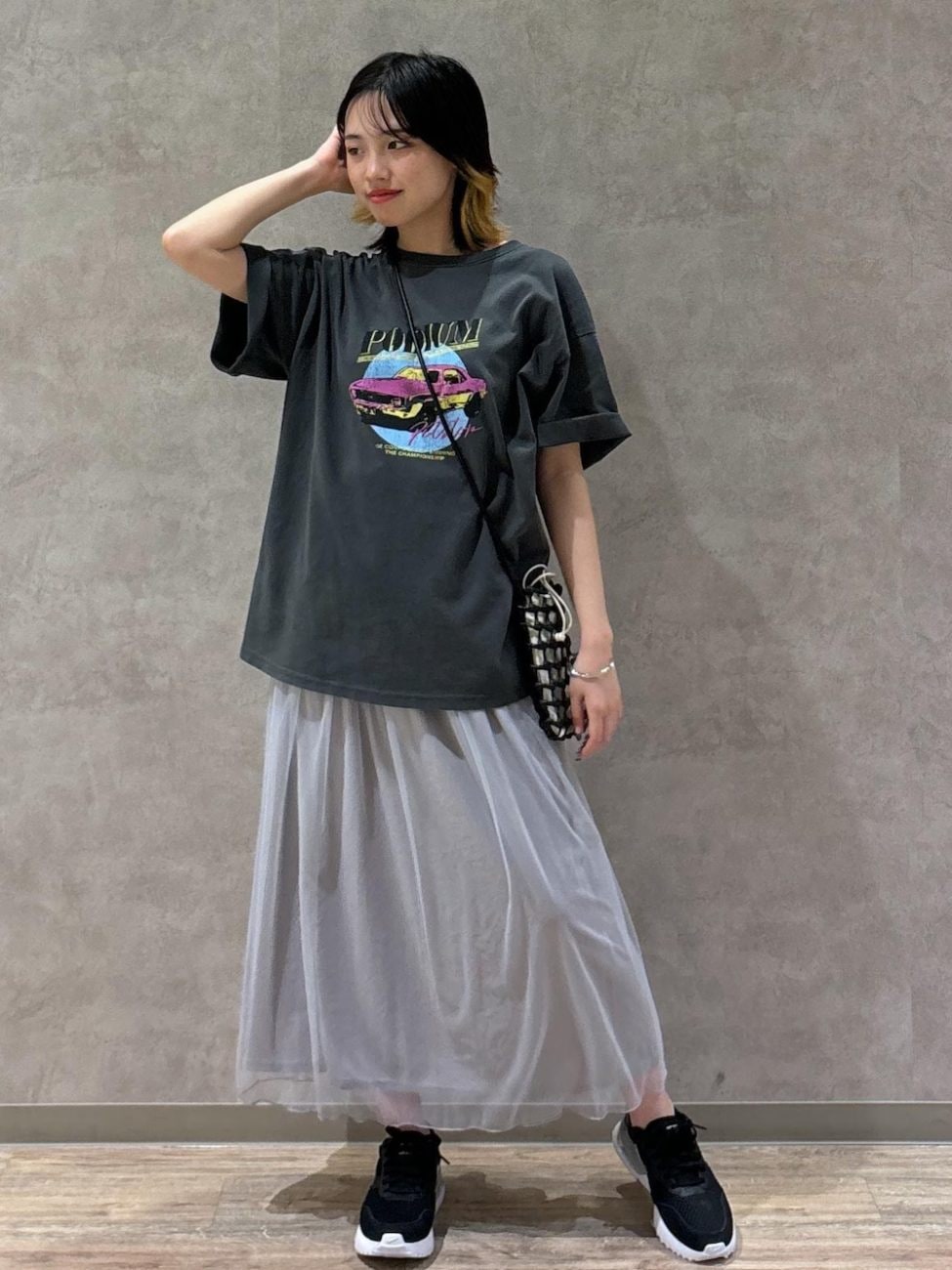 ▼バンドTシャツ×チュールスカート
