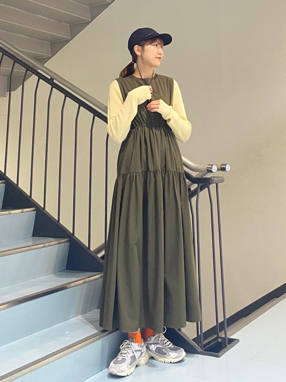 ▼サロペットワンピース×スニーカー