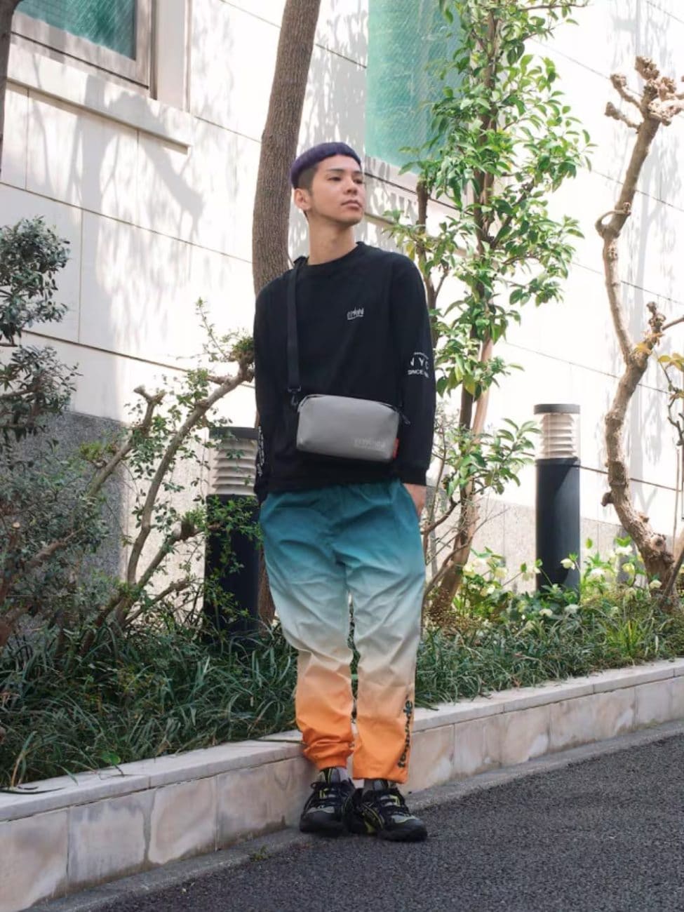 ▼黒Tシャツ×グラデーションカラーパンツ