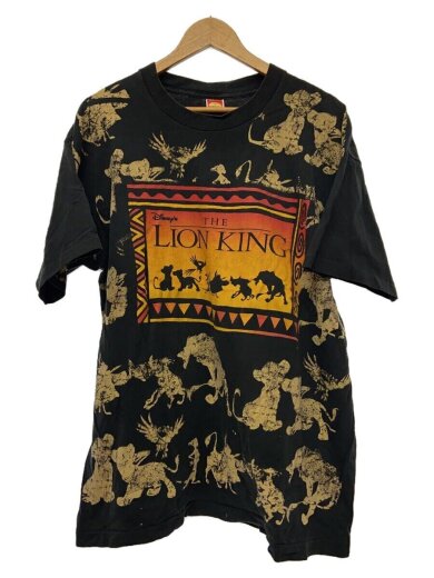 Tシャツ/--/コットン/BLK/総柄/90s/ライオンキング