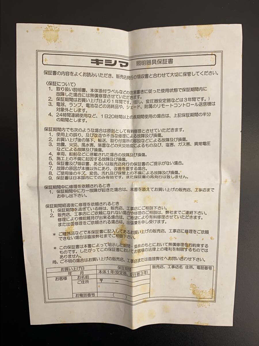 - ・返金保証書が無い場合または紛失された場合