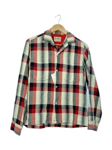 長袖シャツ/S/ウール/RED/チェック/50~60s/Pタグ