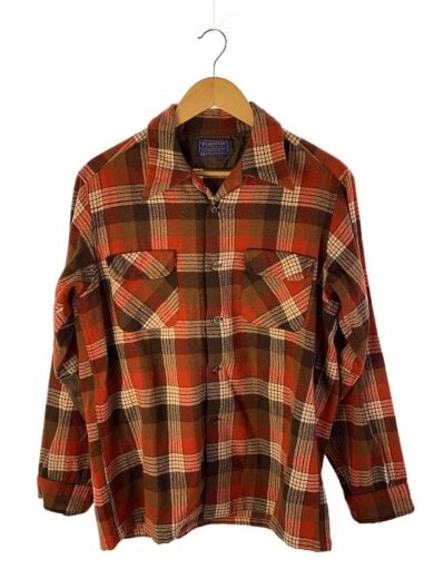 長袖シャツ/L/ウール/BRW/チェック//