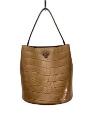 バケツ型ハンドバッグ/クロコダイル型押し/レザー/BRW/※ショルダーベルト欠品