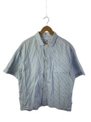 シアサッカー/半袖シャツ/M/コットン/BLU/ストライプ
