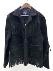 フリンジカービングウエスタンレザージャケット・ブルゾン/XS/牛革/ブラック/タグ付き