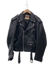 ダブルライダースジャケット/36/レザー/BLK/無地