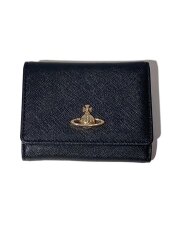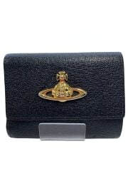 3つ折り財布/レザー/BLK/レディース
