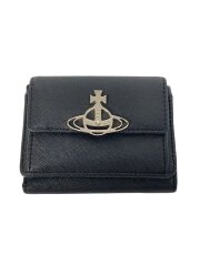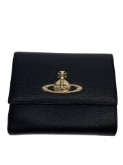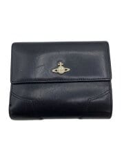 3つ折り財布/レザー/BLK/レディース