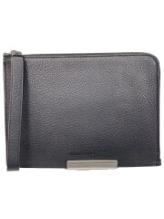 セカンドバッグ/レザー/BLK/無地