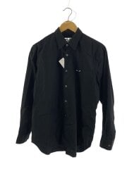 長袖シャツ/M/コットン/BLK/az-b002