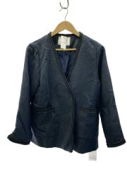 ツイードVネックノーカラージャケット/FREE/ポリエステル/NVY/21-010-912-4001-3-0