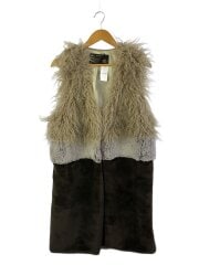 ニット切替エコファーロングジレベスト/38/ウール/ADWS-801-17A