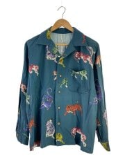 24SS/LONG SLEEVE ALOHA SHIRT/虎シャツ/長袖シャツ/38/レーヨン/ブルー