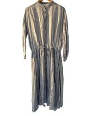 長袖ワンピース/FREE/リネン/BLU/ストライプ/YR-221-018