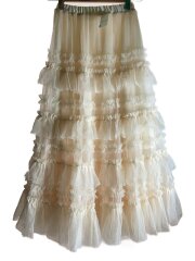 長袖ワンピース/2/ウール/BEG/チュール/裾ギャザー/オケージョンワンピース