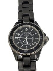 クォーツ腕時計/アナログ/レザー/BLK
