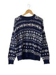 ニット・セーター(厚手)/L/ウール/NVY/総柄