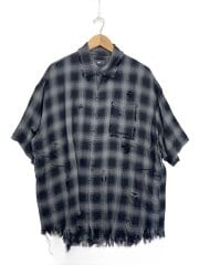 ダメージチェックシャツ/FREE/レーヨン/BLK/チェック/136558