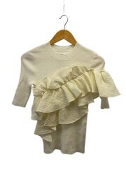 5分袖アシメフリルニット/38/レーヨン/ホワイト/34155640