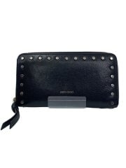 スタッズラウンドファスナー/長財布/レザー/BLK/レディース