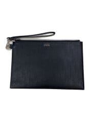 セカンドバッグ/レザー/BLK/無地