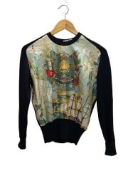 スカーフ切替/HENRY.F.SMITH/ニット・セーター(薄手)/38/シルク/BLK/総柄