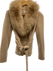 フォックスファーカラーウールコート/38/ウール/BEG/031-252018