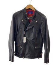 ノーカラーライダースジャケット/38/豚革/NVY/無地/265311201-L/タグ付き