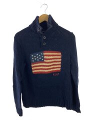 星条旗/S/コットン/NVY/リネンブレンド/タートルネック